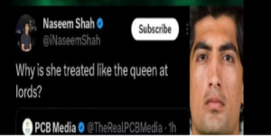 تفصیلات کے مطابق پاکستان سپر لیگ (PSL) کی افتتاحی تقریب کے دوران نسیم شاہ کے آفیشل ایکس (ٹویٹر) اکاؤنٹ سے ایک متنازع جواب پوسٹ کیا گیا تھا، جس میں وزیراعلیٰ پنجاب مریم نواز کا حوالہ دیتے ہوئے سوال اٹھایا گیا کہ “لارڈز میں ان کے ساتھ ملکہ جیسا سلوک کیوں کیا جاتا ہے؟”