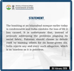 تفصیلات کے مطابق بھارتی وزارتِ خارجہ نے سانحہ راولپنڈی پر جاری پریس ریلیز میں مذمتی الفاظ پر متنازع بیان بازی کا آغاز کر دیا۔ بھارت ایک طرف پاکستان میں دہشت گردی کی کاروائیوں کی پشت پناہی میں ملوث ہے وہیں دوسری جانب متنازع بیان بازی کا سلسلہ شروع کر دیا ہے۔