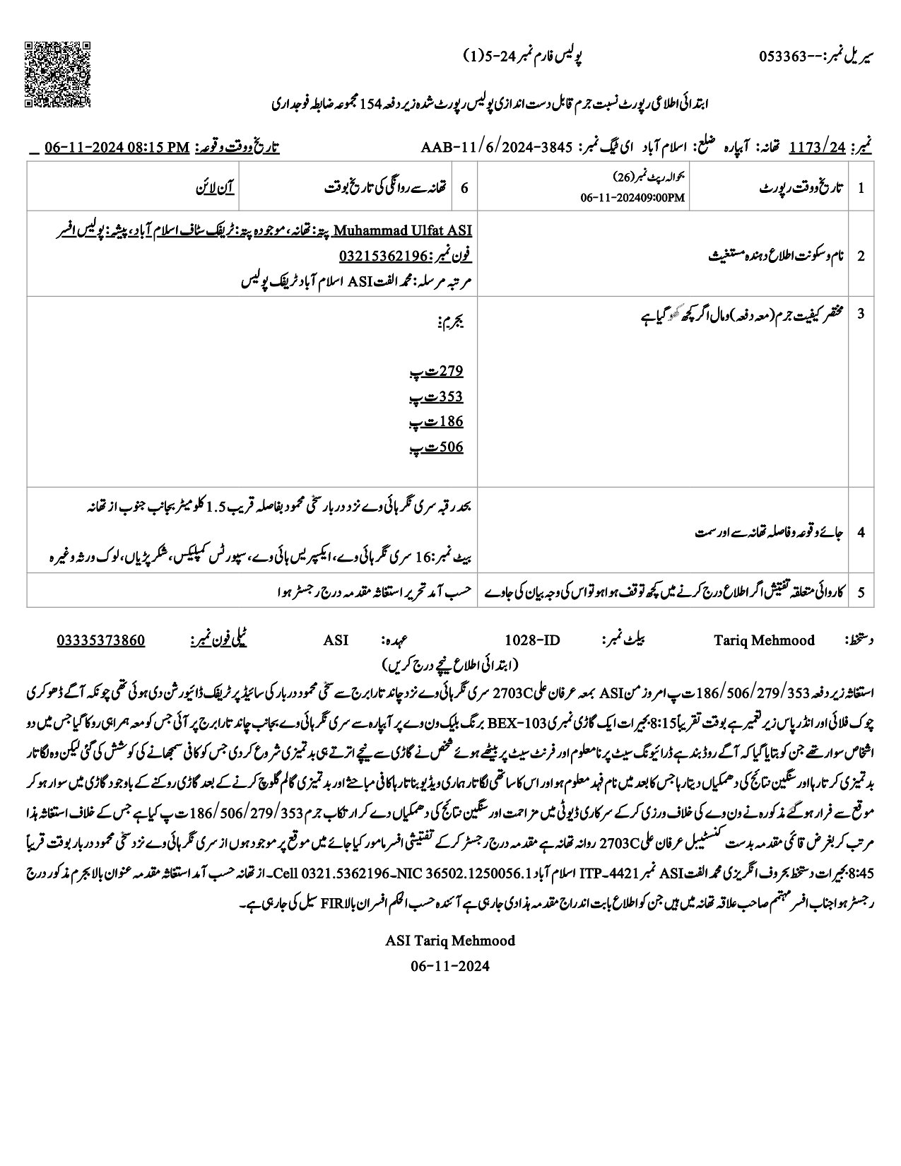 دستاویزات کے مطابق ملزم کے خلاف تھانہ مارگلہ پولیس نے مقدمہ درج کر لیا، گرفتارشخص عادی مجرم معلوم ہوتا ہے جو پہلے بھی کافی چوریاں کر چکا ہے، ملزم پر الزام ہے کہ وہ الیکٹرک کیٹل ، گیس سلنڈر اور نوکیا موبائل کی چوری میں ملوث ہے ۔