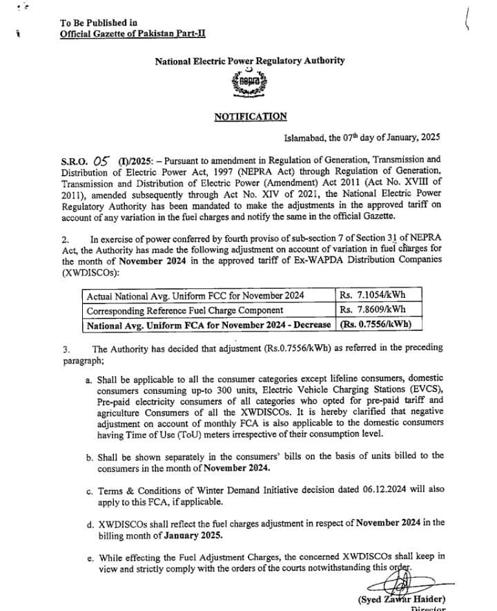 پاکستان بھر کے بجلی صارفین کے لیے خوشخبری ہے کہ سرکاری ڈسکوز کے صارفین کے لیے بجلی 75 پیسے فی یونٹ سستی کر دی گئی۔