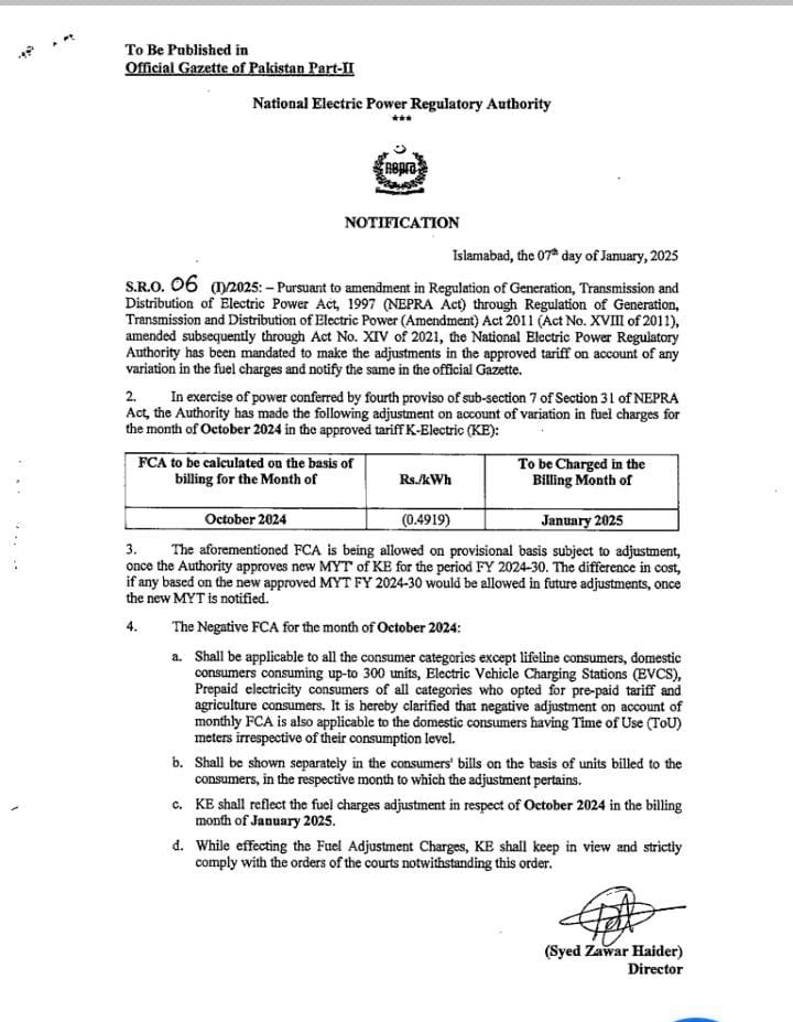 کراچی الیکٹرک (KE) کے صارفین کے لیے بھی بجلی کی قیمت میں 49 پیسے فی یونٹ کمی کی منظوری دی گئی۔ یہ کمی ماہانہ فیول پرائس ایڈجسٹمنٹ (FCA) کی مد میں کی گئی ہے جو کہ سرکاری ڈسکوز اور کے الیکٹرک دونوں کے صارفین کو فائدہ پہنچائے گی۔