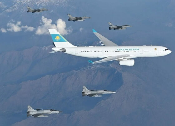 پاک فضائیہ کے لڑاکا طیاروں کے چھ رکنی دستے نے قازقستان کے صدر قاسم جومارت توکایووف کو پاکستانی فضائی حدود…