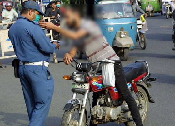 چالان کا صدمہ جان لیوا بن گیا، موٹرسائیکل سوار ٹریفک اہلکاروں کے سامنے ہی جاں بحق