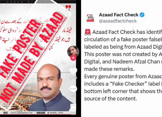 آزاد فیکٹ چیک نے سوشل میڈیا پر آن لائن گردش کرنے والے ایک ایسے جعلی پوسٹر کے بارے میں خبردار…